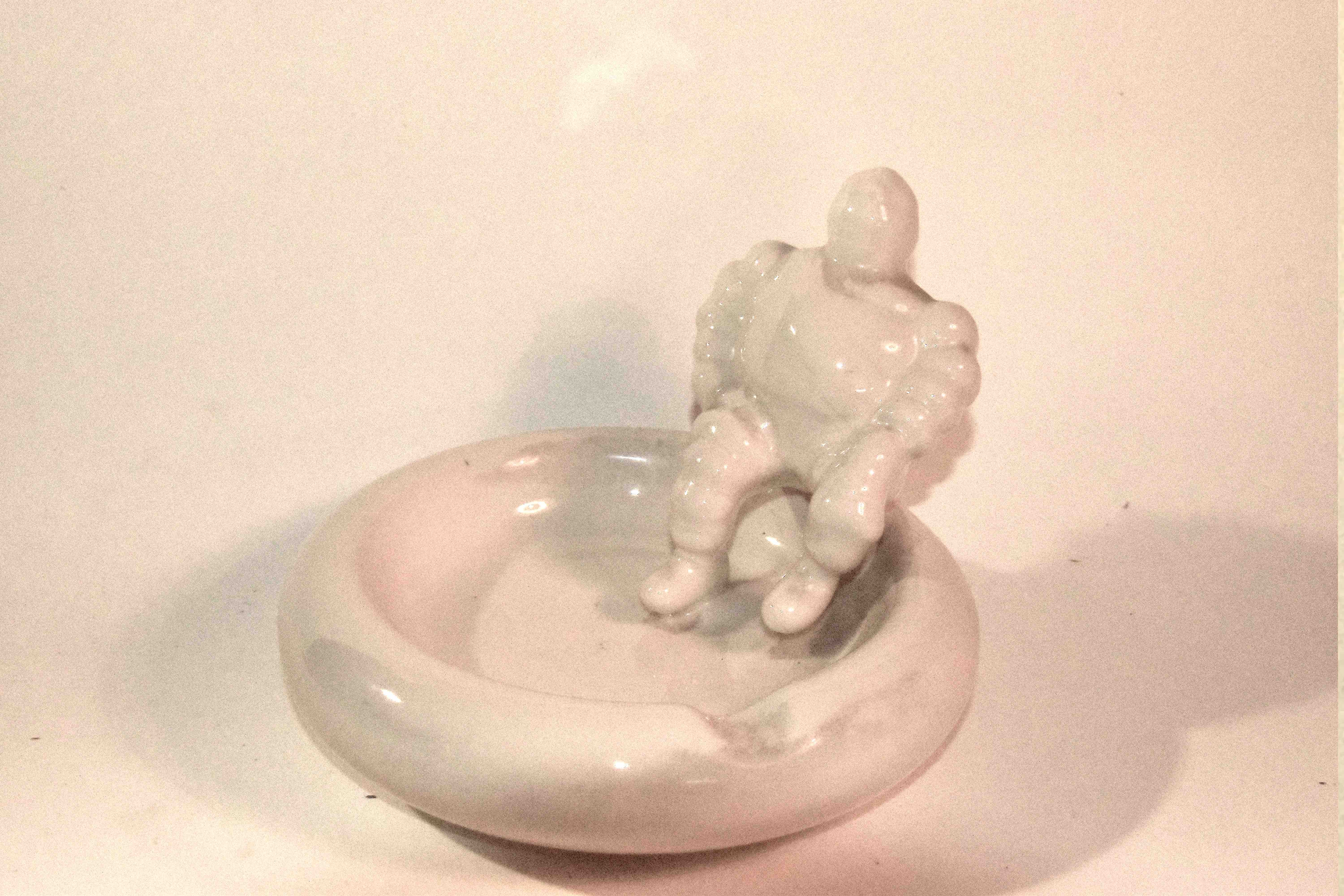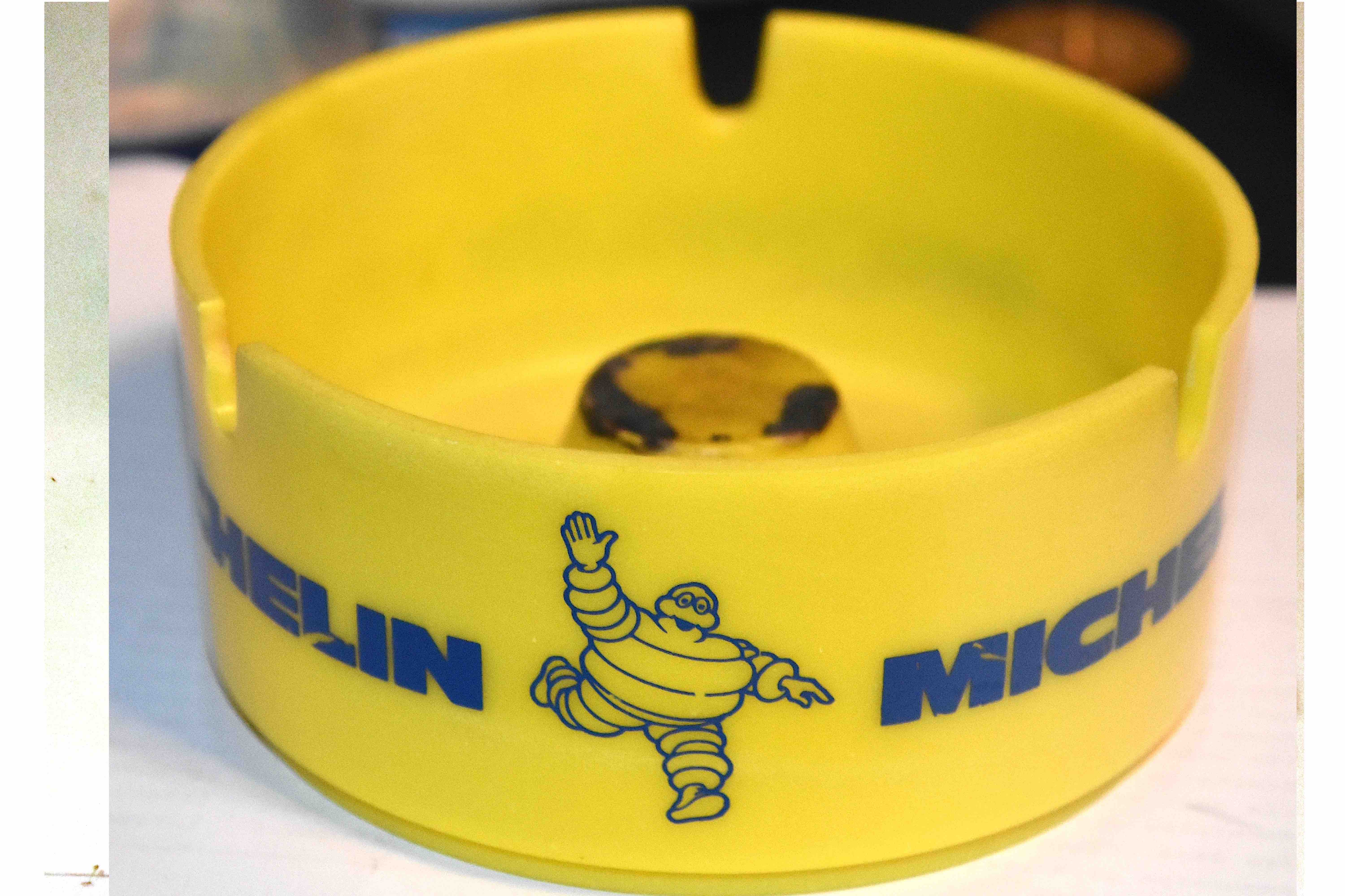 Le cendrier est un élément incontournable du vingtième siècle, mais comme le cigare que bibendum a abandonné très tôt cet élément publicitaire a été abandonné en tant qu'élément de PLV dans les années 90 ou 2000. comme l'interdiction de fumer dans les lieux publics prenait le pas sur les habitudes.